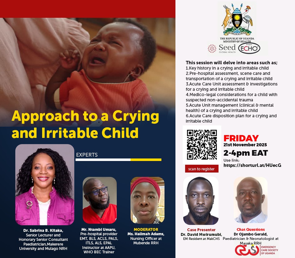 Session delved into; 1. Key history in a crying and irritable child 2. Pre-hospital assessment, scene care and transportation of a crying and irritable child 3. Acute Care Unit assessment & investigations for a crying and irritable child 4. Medico-legal considerations for a child with suspected non-accidental trauma 5. Acute Unit management (clinical & mental health) of a crying and irritable child 6. Acute Care disposition plan for a crying and irritable child