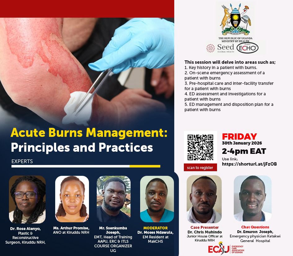 The session delved into discussing, 1. Key history in a patient with burns. 2. On-scene emergency assessment of a patient with burns 3. Pre-hospital care and inter-facility transfer for a patient with burns 4. ED assessment and investigations for a patient with burns_ 5. ED management and disposition plan for a patient with burns