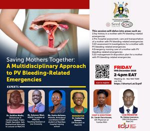 The Session delved into; 1. Key history in a mother with PV bleeding-related emergencies 2. Pre-hospital assessment, care and transportation of a mother with PV bleeding-related emergencies 3. ED assessment & investigations for a mother with PV bleeding-related emergencies 4. Emergency nursing care of a mother with PV bleeding-related emergencies 5. ED management & disposition plan for a mother with PV bleeding-related emergencies