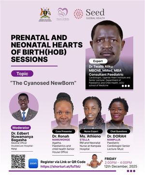 The session will delve into; 1. Pertinent history in a cyanosed newborn 2. Common etiologies of cyanosis in newborns 3. Clinical assessment & Investigations to consider 4. Nursing care of a cyanosed newborn 5. Clinical management priorities for a cyanosed baby 6. Disposition plans (referral Vs. Home with follow-up plans)